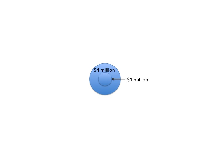 I drew a small circle on Bob’s whiteboard — our current classified revenue. Let’s say, in a smallish Morris market, this might be $1 million a year, down from a peak of about $4 million just a few years ago.