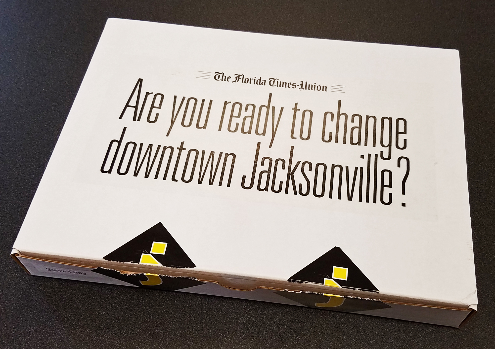 - Marketing to consumers includes full-page print ads in the T-U, Jacksonville.com banner ads, man-on-the street video teasers prior to launch, radio spots, social media ad campaigns, a web landing page with articles and flip book, a launch email to advertisers and the T-U’s distribution list and signage for the distribution locations.